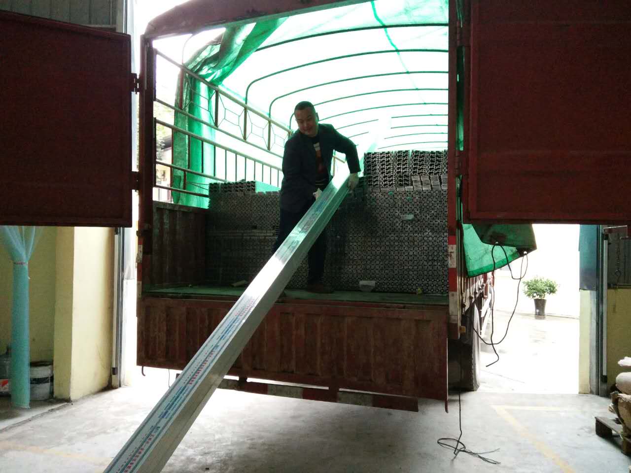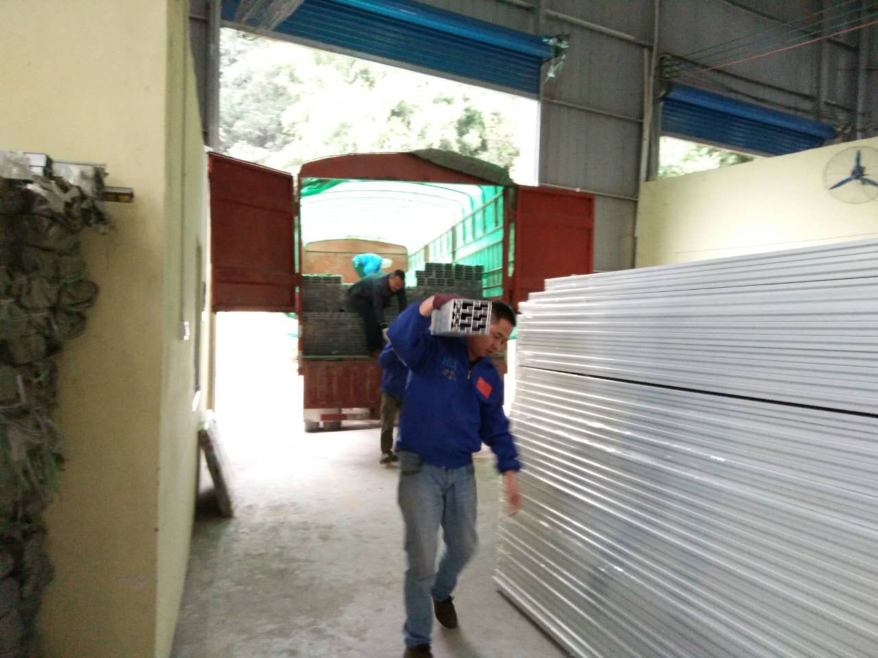 匯利興戰(zhàn)士兩人為一組合,進行鋁型材搬卸