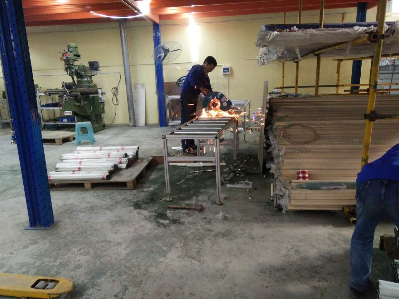 匯利興人正在切割精益管  匯利興人認(rèn)真的對精益管或鋁型材進(jìn)行鉆銑、切割 匯利興精益管小知識:材料(外部塑料層+中間鐵管+內(nèi)部防銹涂層)、外徑(27.8mm-27mm)、內(nèi)徑(19.5mm-24mm)、鋼管壁厚(0.8-1.5mm)、顏色(米黃、米白、純白、黑色防靜電、藍(lán)色)。