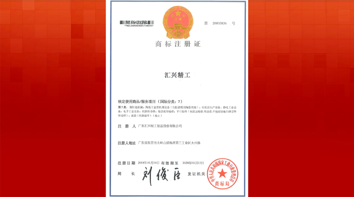 陽(yáng)春三月,萬(wàn)物復(fù)蘇。廣東匯興精工智造股份有限公司的喜訊就如鮮花綻放、嫩芽出頭,一個(gè)接一個(gè),讓人應(yīng)接不暇。3月13日,一份商標(biāo)注冊(cè)證書飄然而至。這為“匯興精工”的商標(biāo)注冊(cè)證書已經(jīng)是中華人民共和國(guó)國(guó)家工商行政管理總局商標(biāo)局為匯興智造簽發(fā)的第9份商標(biāo)注冊(cè)證書。 匯興智造立志成為中國(guó)領(lǐng)先的整廠自動(dòng)化系統(tǒng)解決方案提供商,一直不忘初心,不斷優(yōu)化產(chǎn)品質(zhì)量,堅(jiān)持研發(fā)攻克新技術(shù),打造開(kāi)發(fā)新產(chǎn)品,加速轉(zhuǎn)化新成果。在做大做強(qiáng)的過(guò)程中,強(qiáng)烈地意識(shí)到知識(shí)產(chǎn)權(quán)和品牌建立的重要性,所以,成立了知識(shí)產(chǎn)權(quán)部門,投入大量人力、財(cái)力來(lái)保護(hù)自主創(chuàng)新、知識(shí)產(chǎn)權(quán)和品牌構(gòu)建。 商標(biāo)注冊(cè),為匯興智造樹(shù)立了品牌、建立了口碑。在每一個(gè)匯興人心中都有一個(gè)愿望,那就是打造一個(gè)“百年老店”?!皠?chuàng)于手 精于工 智于器 匠于心 品于行”是匯興智造奉行的工匠精神,匯興人在匯興工匠精神的影響下,勤修內(nèi)功、精益求精地培育著匯興人心中的“百年老店”。 “十年磨一劍”,匯興智造以提升品質(zhì)為根本,下大力氣做真正的好產(chǎn)品,由產(chǎn)品制造走向了產(chǎn)品智造,將向精品制造進(jìn)發(fā),提高品牌的含金量,做出 “匯興百年老店”的金字招牌。(轉(zhuǎn)載匯興智造http://www.huixinggroup.com)