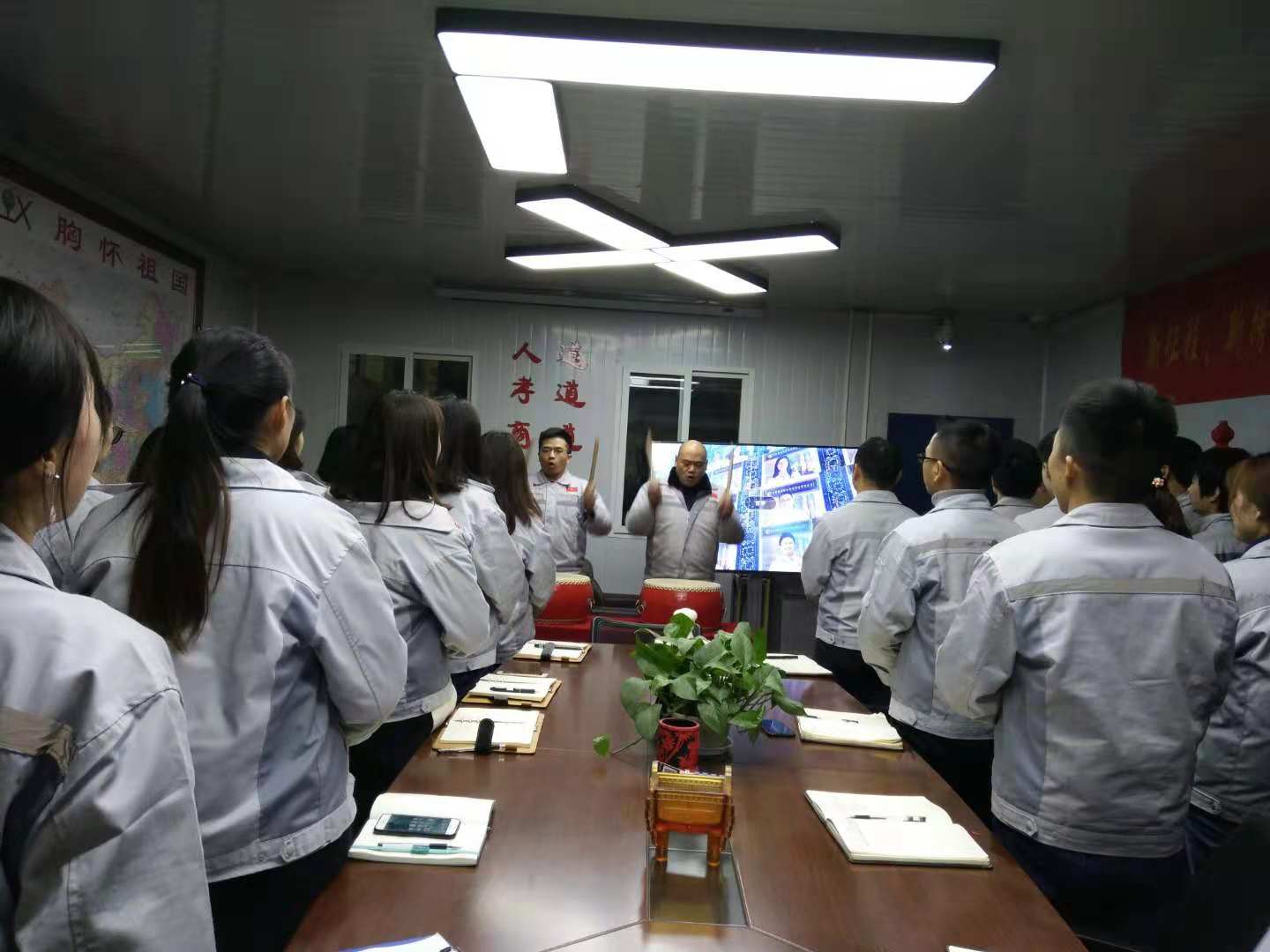 企業(yè)三道“孝道、商道、人道”行三鞠躬 擊士氣鼓,士氣比武器更重要 會(huì)議第一項(xiàng)議程:嘉獎(jiǎng)環(huán)節(jié)-優(yōu)秀部門,優(yōu)秀員工評(píng)選。本月度優(yōu)秀部門“物控部”,月度之星“熊學(xué)斌”,他們用行動(dòng)告訴我們什么是阿甘精神,什么是責(zé)任,在此祝賀他們同時(shí)也感謝他們的辛勤付出,感謝大家的付出,相信在僅有的2018年里,我們定會(huì)創(chuàng)造奇跡。 月度之星和優(yōu)秀部門獲得者合影圖 第二項(xiàng)議程:由我們的行政主管陳香草宣導(dǎo)倡議書,勉勵(lì)大家:“付出不一定有收獲,但不付出是一定沒有收獲”,其次感謝大家在工作崗位上的無私奉獻(xiàn),號(hào)召大家在2018的短短18天里面繼續(xù)努力,勁往一處使,心往一起靠,全力以赴,不忘初心、砥礪前行。同時(shí)宣導(dǎo)公司年會(huì)籌備事宜,并倡導(dǎo)大家踴躍參與,辦一個(gè)熱熱鬧鬧與眾不同的年會(huì)。 會(huì)議圖景一 第三項(xiàng)議程:胡偉路總經(jīng)理作會(huì)議總結(jié)及未來展望。會(huì)上,胡偉路總經(jīng)理提到“三心二力”,對(duì)自己的信心,跟進(jìn)客戶的耐心,拿下訂單的決心,對(duì)規(guī)矩的執(zhí)行力,團(tuán)隊(duì)協(xié)作的戰(zhàn)斗力;希望大家在最后的18天里以奉獻(xiàn)自身的力量,自身協(xié)作能力全力沖刺,完成好每一份訂單。在2018的最后一個(gè)月請(qǐng)各個(gè)部門主管做好總結(jié)與反思,用最大的力量助力公司,為我們的2018畫上一個(gè)完美的句號(hào)。 會(huì)議圖景二 最后,全體匯興人起立,整肅衣冠,眾志成城齊喊“為夢(mèng)想沖刺,我是匯利興的一名忠誠(chéng)戰(zhàn)士”,整個(gè)會(huì)場(chǎng)環(huán)繞著吶喊聲,現(xiàn)場(chǎng)激情澎湃、士氣高昂、振奮人心。
