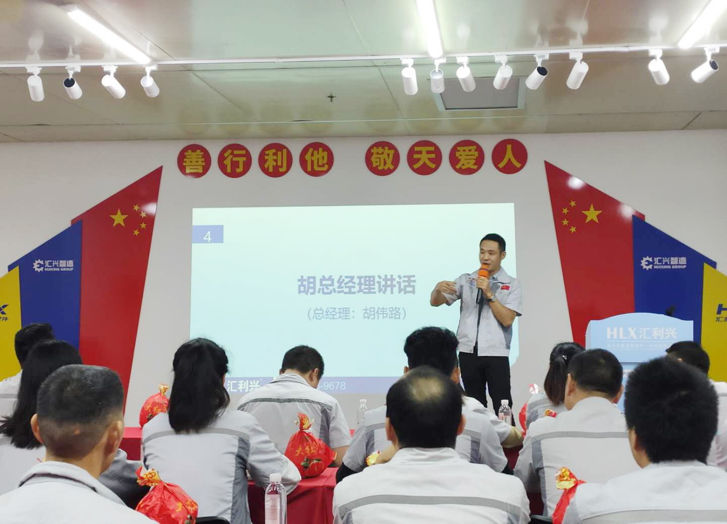 2020年9月22日8點(diǎn),匯利興西南工廠全體員工在匯利興學(xué)校召開(kāi)8月月度會(huì)議,由事務(wù)中心主管陳香草主持。 會(huì)議前由二位核心高管擊士氣鼓,鼓舞匯利興奮勇前進(jìn),現(xiàn)場(chǎng)鼓聲震天,士氣如虹。 會(huì)議第一項(xiàng)議程,企業(yè)文化的展示。全體匯興人整肅衣冠對(duì)匯興人倍加推崇的“三道文化”(孝道、商道、人道)鄭重地鞠躬,莊嚴(yán)宣誓企業(yè)愿景:“成為行業(yè)優(yōu)秀的智能自動(dòng)化產(chǎn)業(yè)鏈集成服務(wù)商”,企業(yè)使命:做受尊敬的好人,造受尊敬的產(chǎn)品,辦受尊敬的企業(yè),建受尊敬的平臺(tái),企業(yè)精神“用情做人、用心做事”,團(tuán)隊(duì)精神“忠誠(chéng)團(tuán)結(jié)、勤奮進(jìn)取”,工匠精神:創(chuàng)于手、精于工、智于器、匠于心、品于行,行為準(zhǔn)則:口中有德、目中有人、手中有技、心中有愛(ài)、行中有善,職業(yè)準(zhǔn)則:對(duì)工作熱臉、對(duì)同事笑臉、對(duì)錯(cuò)誤紅臉、對(duì)浪費(fèi)黑臉、對(duì)榮譽(yù)爭(zhēng)臉。 會(huì)議第二項(xiàng),新員工入職歡迎儀式。企業(yè)的發(fā)展注定離不開(kāi)新鮮血液的注入,新的活力的輸入,由徐總親自為新入員工頒發(fā)紀(jì)念品及新員工代表講話。